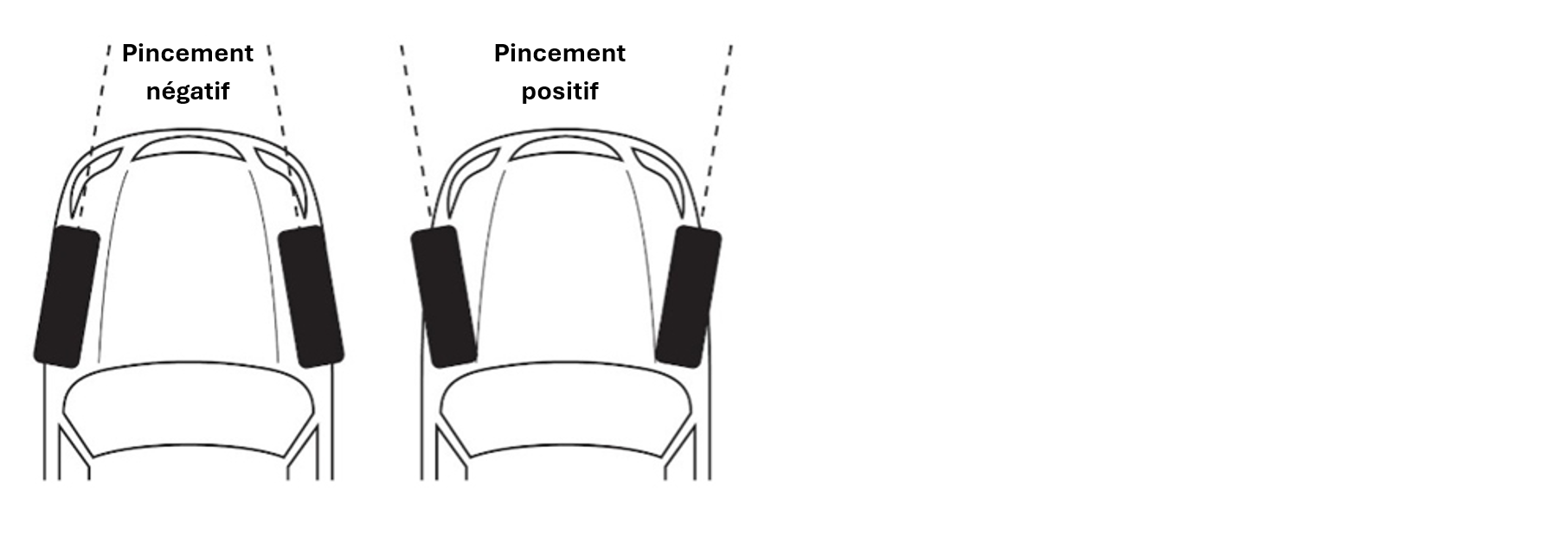 - Pincement positif : les roues pointent l’une vers l’autre.