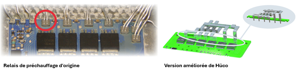 Hüco a développé la technologie de son relais de préchauffage pour s'attaquer aux problèmes connus des versions des équipementiers d'origine. Grâce à une conception interne entièrement revue et à l'utilisation de contacts spéciaux injectés et soudés, la liaison fragile entre le connecteur et le circuit imprimé a sensiblement été renforcée. Cela évite les pannes des bougies de préchauffage individuelles et la défaillance du relais complet.§