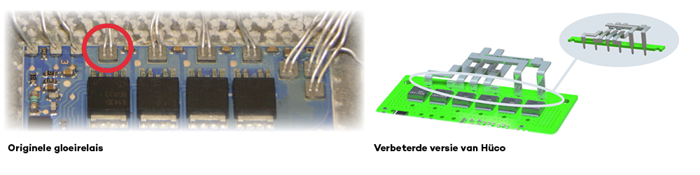 Hüco heeft het gloeirelais technisch doorontwikkeld om bekende uitvalproblemen van OE-varianten effectief aan te pakken. Door een volledig herzien intern ontwerp en het gebruik van speciaal geïnjecteerde en gesoldeerde contacten, wordt de kwetsbare verbinding tussen connector en printplaat aanzienlijk versterkt. Dit voorkomt storingen van afzonderlijke gloeibougies en volledige uitval van het relais.